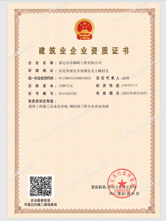 保定京洋鋼構(gòu)工程有限公司位于千年古縣望都。望都縣處于京津冀核心區(qū),是對(duì)接京津的交通要塞。距北京180公里,天津170公里,石家莊機(jī)場(chǎng)70公里。京石高鐵、京廣鐵路、京港澳高速、107國(guó)道四條交通大動(dòng)脈縱貫全縣。圍繞望都南北各一座高鐵站,定州站(30公里)和保定站(35公里)。京昆高速、保阜高速均有連接線,四條省級(jí)公路縱橫交錯(cuò),交通便捷。